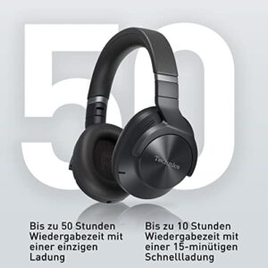 Technics EAH-A800E-S Bluetooth-Kopfhörer mit Noise Cancelling, Mikrofon, einfacher Verbindung, klappbar, Silber.