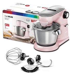 Bosch Küchenmaschine OptiMUM MUM9A66N00, Edelstahl-Schüssel 5,5 L, Planetenrührwerk, Profi-Knethaken, Schnee-, Silikonbesen, 7 Arbeitsstufen, 1600 W, Rosa/Schwarz