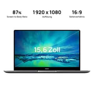 HUAWEI MateBook D15 15.6″ Fullview Display i3-1115G4 8GB RAM 256GB SSD Windows 11 QWERTZ Grau Schlankes Metallgehäuse Fingerabdrucksensor TÜV Rheinland low blue light