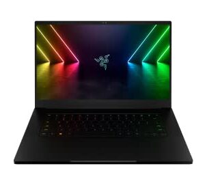 Razer Blade 15 – Gaming Laptop mit NVIDIA Geforce RTX 3080 Ti, Intel i9-12900H, 4K UHD 144Hz Display, 32GB DDR5 RAM, 1TB SSD und Alu-Gehäuse in Schwarz mit QWERTZ DE-Layout.