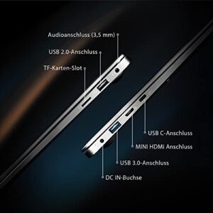 LincPlus P2 14″ Notebook mit Intel Celeron N3350, 4GB RAM, 64GB eMMC, Windows 10 S, QWERTZ DE Tastatur und dünnem Metallgehäuse.
