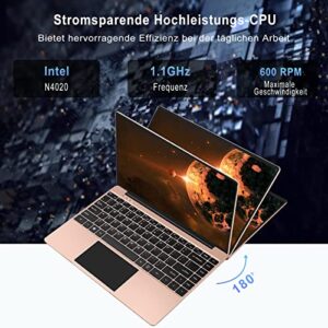 WOZIFAN Laptop 14″ 128GB SSD, 1TB erweitert, Win 10 Notebook, Intel 6GB RAM, 2.4G+5G WiFi, 1080 FHD, Bluetooth, USB, HDMI, kabellose Maus & Tastaturschutz (Deutsch/Gold)