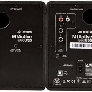 Alesis M1Active 330 USB – USB-Desktop-Lautsprechersystem mit Audio-Interface, 3-Zoll-Tieftönern und Bass-Boost.
