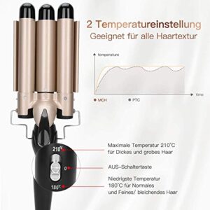 Verstellbarer Lockenwickler mit 3 Fässern und 2 Temperaturmodi. Goldener Keramik-Zauberstab für tragbare Haarstyling.