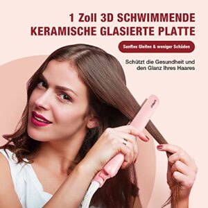SUPRENT Glätteisen 1 Zoll Haarglätter Testsieger Locken & Glätten 2 in 1 für Reisen Keramikbeschichtung Digitales Display Dual-Spannung 150-230°C Pink