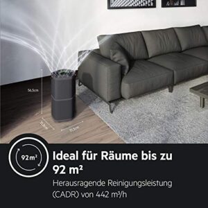 AEG AX91-404DG Luftreiniger beseitigt 99,9% luftgetragener Bakterien, nur 17 dB(A), Automatik-Modus, Luftqualitätsanzeige, leistungsstarke Filter, App-Steuerung, bis 92 m², dunkelgrau.
