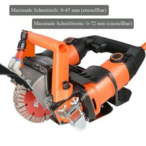 Elektrische Mauernutfräse 5200W – Industrielle Wandnutfräsmaschine mit Wasserkasten, Ziegel- & Betonfräse, Doppelmotor, 10500 U/min, 45mm Tiefe, 72mm Breite