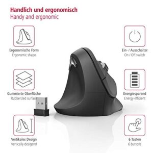Hama Funkmaus EMW-500L für Linkshänder, vertikal, 6 Tasten, optischer Sensor, 1000/1400/1800 dpi, schwarz