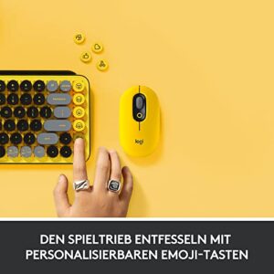 Logitech POP Keys Tastatur – Gelb/Schwarz, kabellos, mechanisch, anpassbare Emoji-Tasten, kompaktes Design, Bluetooth/USB, Multi-Device, DE QWERTZ, OS-kompatibel