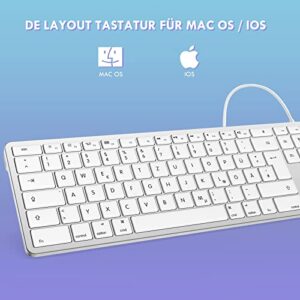 Seenda Kabelgebundene Mac Tastatur mit Type C/USB Anschluss, Deutsch QWERTZ iMac Keyboard für Mac OS/IOS in Silber & Weiß.