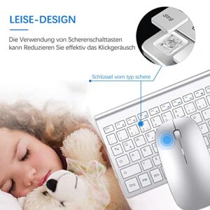 Tastatur-Maus-Set Ultra Slim, TopMate 2,4G mit Schissschalter und Abdeckung, inkl. Batterien für PC/Laptop/Windows/Mac – Silber/Weiß