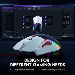 EKSA Gaming Maus 12000 DPI, 7 programmierbare Tasten, Gewichtstuning, RGB-Beleuchtung, Anpassbare Spielprofile, 2 Backcover für PC/Mac (Weiß-Schwarz)