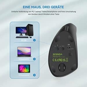 Seenda Bluetooth Maus mit Seitentasten, 2.4G/Dual BT 4.0 für 3 Geräte, wiederaufladbar, vertikal, leise Klick, Schwarz.