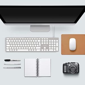 Kabelgebundene Tastatur für Apple Mac OS mit Ziffernblock und Vollaluminiumrahmen. Deutsches QWERTZ-Layout. Plug-and-Play USB für iMac/Mac Mini/MacBook von Yivandi.net in Weiß.