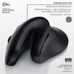 CSL Wireless Maus – Bluetooth + 2,4 Ghz – vertikale Ausführung – ergonomisches Design – Vorbeugung gegen Mausarm – 5 Tasten, schwarz