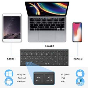 iClever BK10 Bluetooth Tastatur – kabellos wiederaufladbar mit 3 Bluetooth Kanälen, stabile Verbindung, ultraslim ergonomisches Design für iOS, Android, Windows (schwarz)
