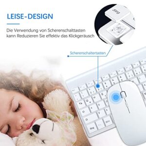 Tastatur-Maus Set Ultra Slim TopMate 2,4G, USB 2400DPI Maus & Schissschalter Tastatur mit Abdeckung, inkl. 2 AA & 2 AAA Batterien, für PC/Laptop/Windows/Mac – Weiß