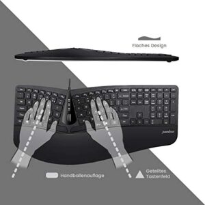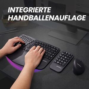 Perixx PERIDUO-606A 3-in-1 kabellose ergonomische Tastatur mit Maus und numerischem Tastenfeld, verstellbarer Handballenauflage, kippbarem Rad, flachen Tasten und QWERTZ-Layout.