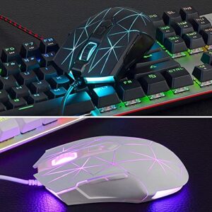 AJ52 Gaming-Maus mit RGB-Modi und DPI-Einstellung, weiß + Muster.