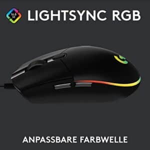 Logitech G203 Gaming-Maus, LIGHTSYNC RGB-Beleuchtung, 6 programmierbare Tasten, 8.000 DPI, geringes Gewicht – Schwarz