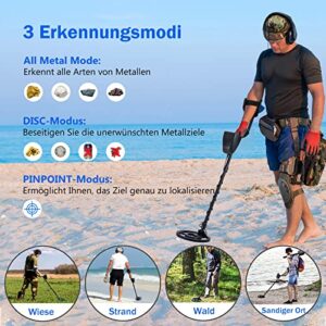 DR.ÖTEK Metalldetektor Set für Erwachsene und Kinder, Multifunktional mit Pinpointer Modus, wasserdichte Spule, Digger Schaufel und Tragetasche.