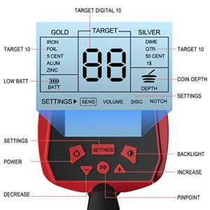 Metalldetektor SUNPOW Profi für Erwachsene, einstellbar mit LCD-Monitor, 4 Modi (Pinpoint, Disc, Notch, All Metal) und Anti-Interferenz-Funktion.