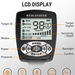 Metalldetektor SUNPOW – Faltbarer Profi-Detektor für Erwachsene mit Pinpoint-, Disc-, Notch- und All-Metal-Modus, LCD-Monitor (mit Hintergrundbeleuchtung), verstellbarem Schaft und Wasserdichtigkeit.