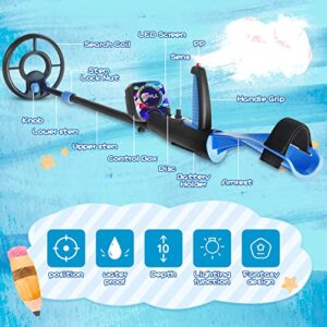 SUFFLA Metalldetektor für Kinder, wasserdicht mit einstellbarem Golddetektor, Pinpoint & LED-Blitz. Leichte Jugend-Metalldetektoren mit wasserdichter 7,5“ Spule.
