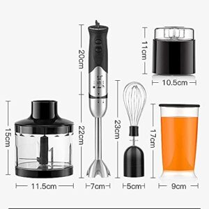 ZGPMGS 4-in-1-Stabmixer, 400W, 6-Gang, inkl. 500ml Mühle, 600ml Behälter, Schneebesen. Ideal für Pürees, Smoothies, Saucen und Suppen. Schwarz.