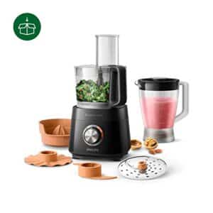 Philips HR7530/10 Küchenmaschine Viva Collection (850 W, 29 Funktionen, 2L Füllkapazität, 2-in-1 Schneidescheibe, Zitruspressenaufsatz, Standmixeraufsatz) schwarz
