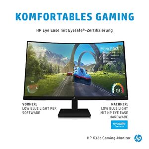 HP X32c Gaming Monitor – 32 Zoll FHD Bildschirm, VA 1500R Curved Display, 165Hz, 1ms Reaktionszeit, VESA Mount, AMD FreeSync Premium, HDMI/Displayport, Eyesafe Technology