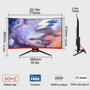 YINxy Gebogener Gaming-Monitor 32 Zoll 1800 R 60 Hz 3 Ms 1920 X 1080 Schwarz