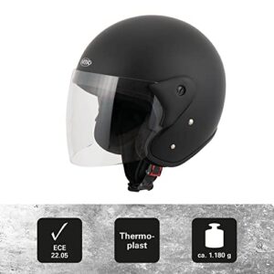 MTR DX2 Jethelm, ECE-zertifiziert – Maximale Verkehrssicherheit, Robust & Komfortabel, Ideal Für Motorroller & Vespa, Ratschenverschluss, Klares Visier
