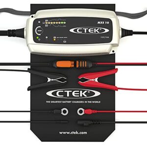 CTEK MXS 10 Batterieladegerät 12V für größere Fahrzeugbatterien, Boot, Wohnwagen und Wohnmobil. Mit Rekonditionierungsmodus, Versorgungsfunktion und AGM-Option in Schwarz/Silber/Rot.