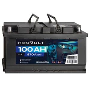 HeyVolt Autobatterie 12V 100Ah 870A/EN Starterbatterie, wartungsfrei, ersetzt 85Ah-95Ah.