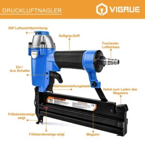 VIGRUE Druckluftnagler F50/9040, 2 in 1 Klammer und Nagelpistole (Nägel bis 50mm, Klammern bis 40mm) mit Zubehörset.