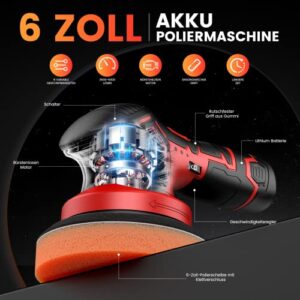 Uaoaii Mini Poliermaschine Akku mit 2 x 2.0Ah Akku, Exzenter Polierer, Auto Politur Set, Poliermaschinen Puffer mit 6 Variablen Geschwindigkeit für Auto, Möbeln, Metall.