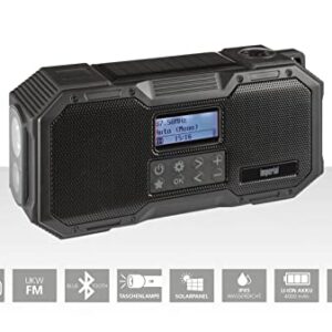 Imperial DABMAN OR 1 – DAB+ Kurbelradio/Notfallradio – Digitalradio (DAB/DAB+/UKW/FM, Bluetooth, Solarzelle, Kurbel, Akku, Taschenlampe, Leselicht, SOS, Thermometer, IPX5 wasserdicht, Powerbank)