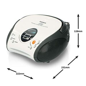 Lenco SCD-24 CD-Player für Kinder, CD-Radio, Stereoanlage, Boombox, UKW Radiotuner, Titel Speicher, 2 x 1,5 W RMS-Leistung, Netz- und Batteriebetrieb, Weiß.