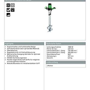 Hikoki UM22VYST Rührgerät, 1800W, 240V, 1. Gang: 150-300 min-1, 2. Gang: 300-650 min-1