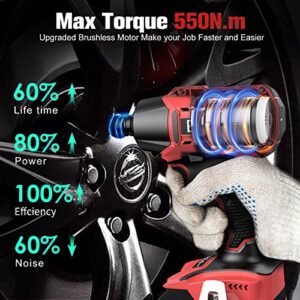 Bamse 21V Bürstenloser Akku-Schlagschrauber mit 550Nm, 4,0Ah Akku, 3-Gang-Variable-Geschwindigkeit, 4 Schlagschraubereinsätzen, 6 Bohrern und 1 Sechskantadapter für Auto und Haushalt.