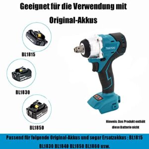 TEETOK Akku Schlagschrauber für Makita DTW300Z, 420Nm bürstenloser Motor, 2 Steckdosen (19/22 mm), 3.0 Akku, 2A Ladegerät