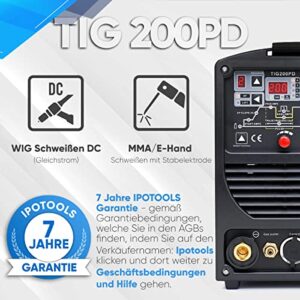 IPOTOOLS 200PD WIG Schweißgerät – TIG/WIG Schweissgerät 200A Inverter mit HF-Zündung, Pulsfunktion, MMA, IGBT, 32-bit Mikroprozessor, 7 Jahre Garantie.