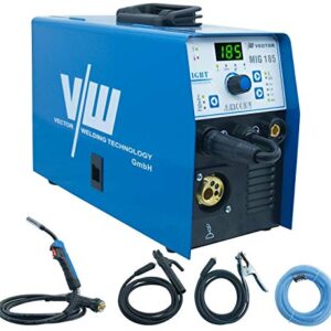 MIG MAG Schweißgerät 185 A SET, 34-teilig, Fülldraht Schweissgerät, Schutzgasschweißgerät mit 185 Ampere, Elektrodenschweißfunktion, Auto Drahtvorschub, 2&4 Takt, Inverter, VECTOR WELDING.