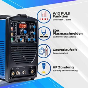 IPOTOOLS TC200ACDC WIG Schweißgerät – 4in1 Kombi Schweissgerät 200 Amper Mit Plasmaschneider 50 A, Inkl. HF-Zündung, Pulsfunktion, MMA E-Hand, IGBT, 7 Jahre Garantie