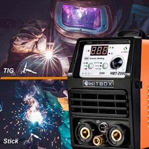 HITBOX WIG Schweißgerät DC-200Amp TIG/MMA 2-in-1 mit Digitale LCD Anzeige HBT2000