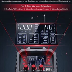 ARCCAPTAIN MIG MAG Schweißgerät 200 Ampere 7-in-1 IGBT Inverter mit vollsynergischer FLUX Fülldraht/MAG/MIG Schutzgas Schweißgerät/MMA/Lift TIG/Spool Gun/Punktschweißen, 230V