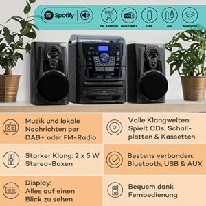 Auvisio 5in1-Plattenspieler mit DAB+/FM-Radio, Bluetooth, CD/Kassetten-Player (Stereoanlage)
