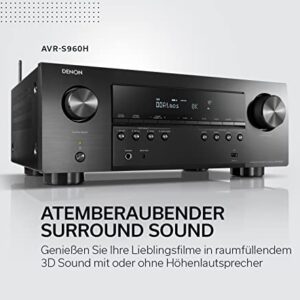 Denon AVR-S960H 7.2-Kanal AV-Receiver, Alexa kompatibel, 6 HDMI Eingänge und 2 Ausgänge, 8K HDMI, Bluetooth, WLAN, Musikstreaming, Dolby Atmos, AirPlay 2, HEOS Multiroom.
