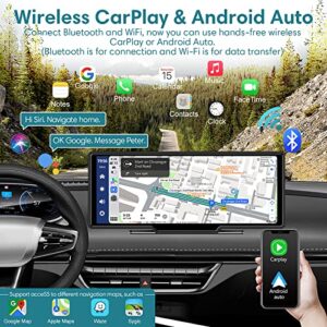 10-Zoll Autoradio mit Wireless Carplay/Android Auto, Kameras, Loop-Recording, IPS Touchscreen, für alle Autos/LKW + 64G SD Karte